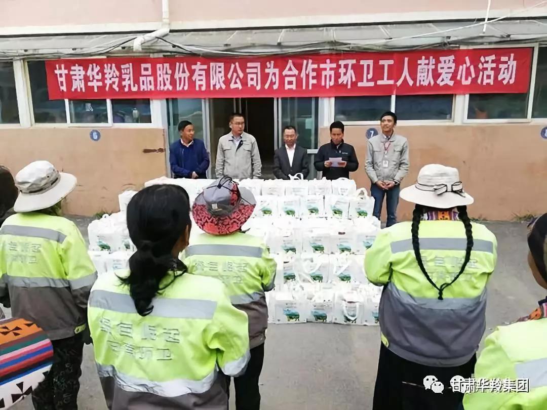 2018年9月29日上午,在國慶節來臨之際,甘肅華羚乳品股份有限公司前往合作市環衛隊對工作在環衛一線的253名環衛工進行了“城市因您而美,關愛環衛工人”慰問活動。