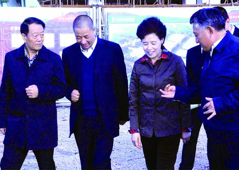 原甘肅省委常委、副省長咸輝(右二),甘南州副州長南木卡桑結(右一)在集團董事長敏文祥(左二)的陪同下視察華羚公司