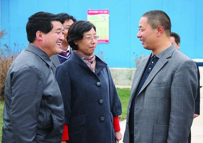 原合作市委書記楊雄(左一),合作市委副書記、市長周梅(左二)在集團董事長敏文祥(右一)的陪同下視察華羚公司