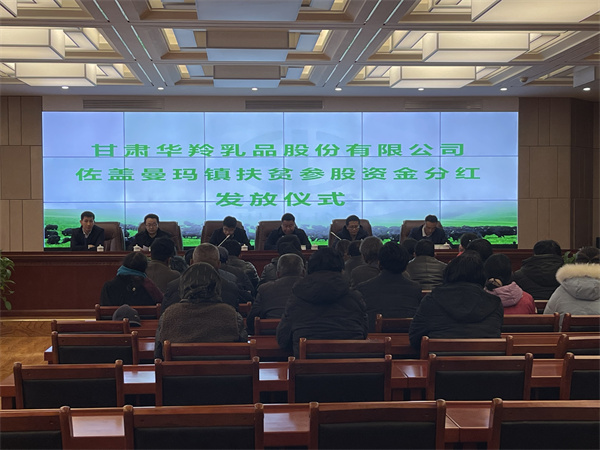 2022年3月1日,甘肅華羚乳品股份有限公司和佐蓋曼瑪鎮共同舉行2021年度農牧村扶貧參股資金分紅發放儀式,華羚乳品公司為佐蓋曼瑪鎮農牧民群眾發放扶貧參股資金49.04萬元,農牧民群眾領到分紅款后臉上洋溢著喜悅的笑容。
